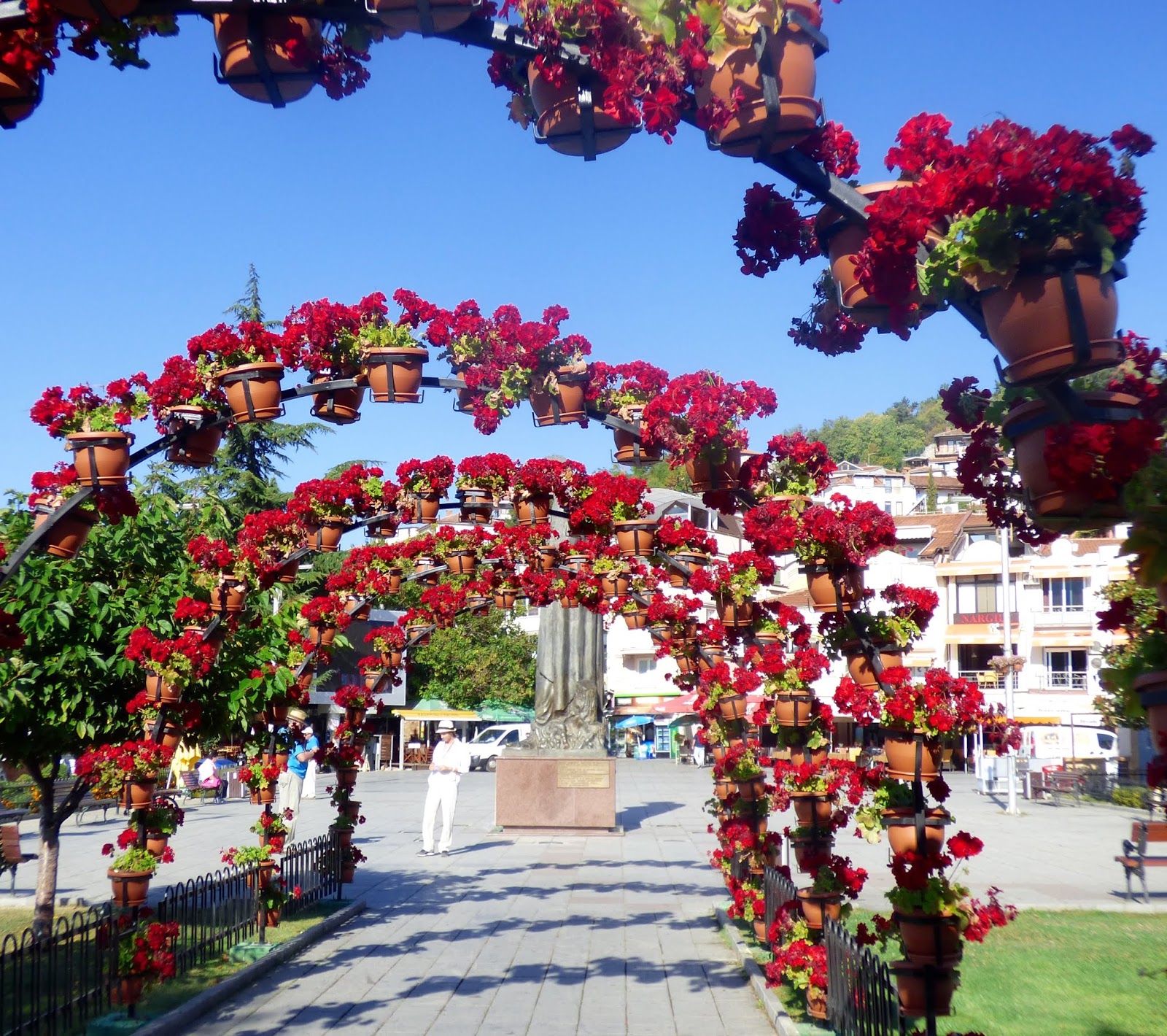The town of Ohrid had a lovely entrance to its park near the square - potted geraniums.